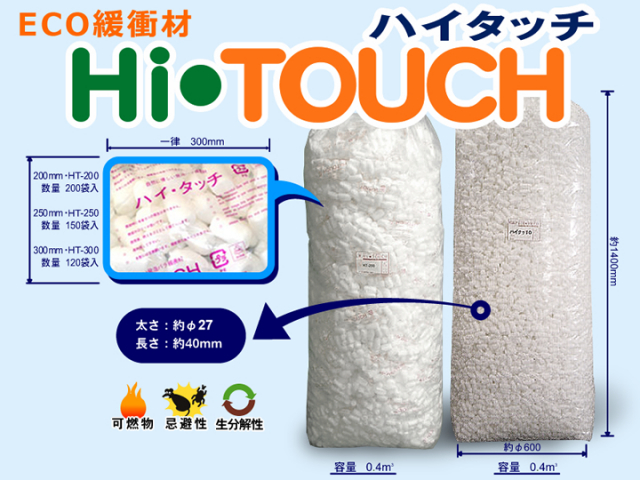 主原料にコーンスターチを使用した自然にやさしい発泡緩衝材「ハイタッチ」です!